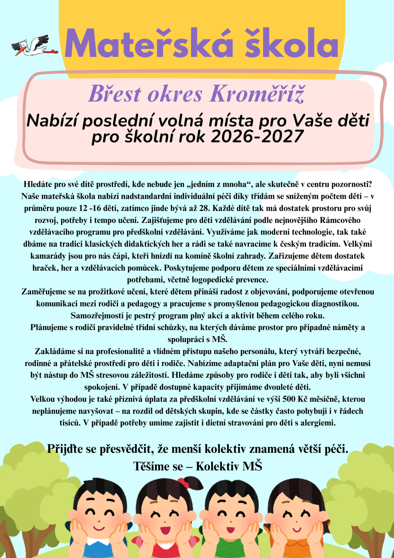 Sledujte, prosím, pozorně Aktuality a Kalendář akcí - kde jsou aktualizovány všechny akce a informace o MŠ