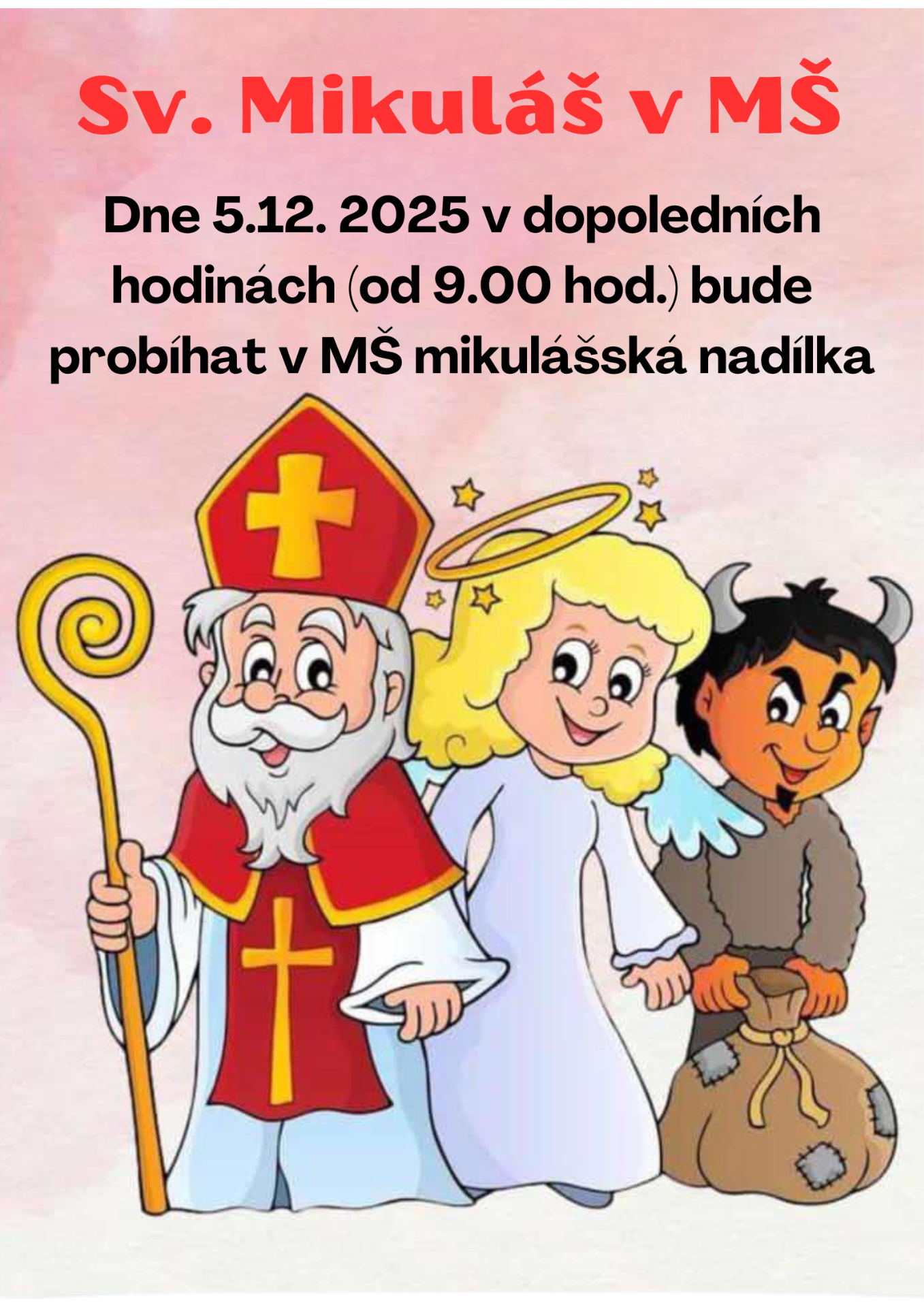 5.12. - Mikulášská nadílka v MŠ - připravte pro děti kostým čerta nebo anděla (nepovinné) děkujeme