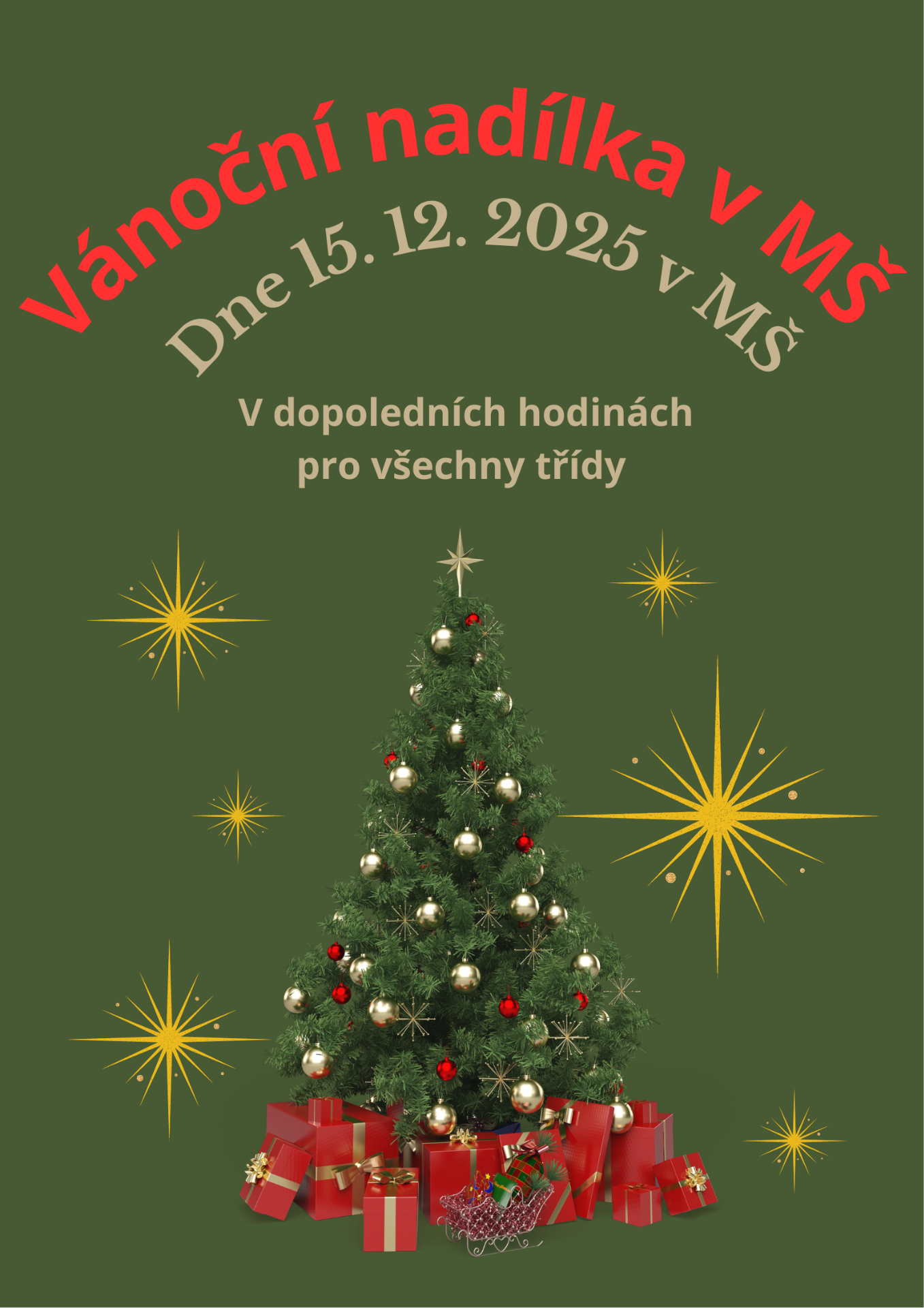 Vánoční fotografování dětí - 25.11. v dopoledních hodinách v MŠ (pouze pro přihlášené školkové děti), ve třídě prosím nahlaste, o kterou sadu máte zájem a zaplaťte. Děkujeme